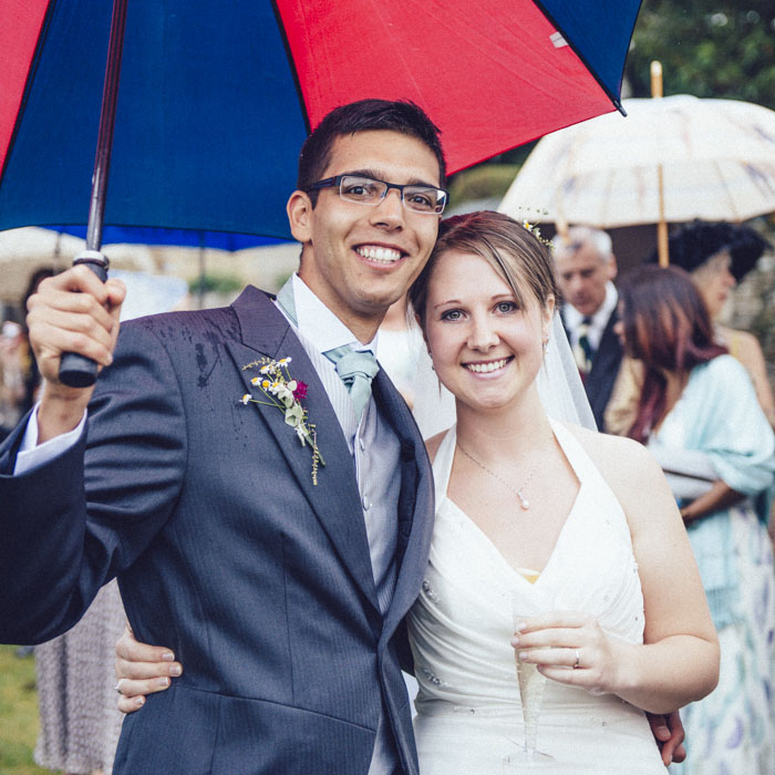 Sometimes, you just have to shake your head at the sheer lunacy of the weather and enjoy it anyway. That was the case for Emma and Simon who, with the help of a hugely impressive family effort, created a memorable wedding for all the right reasons, even if the weather was doing its best to undermine things.