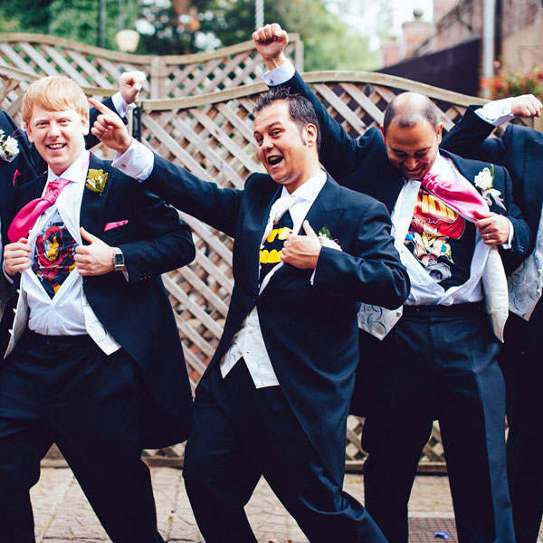 For Emma and Rick’s wedding, it was the groom and groomsmen stealing the show. Beneath that oh so respectable wedding veneer they were concealing secret identities. Well, they would have been secret if they hadn’t ripped their shirts open. The superhero socks and cufflinks were a bit of a giveaway too.