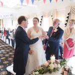 Instead, Rachel, Gavin and guests had a journey of a matter of feet to their reception venue. As usual Bartle Hall had pulled out all the stops, complemented by some lovely homemade bunting, a delicious looking wedding cake and spectacular flowers courtesy of Flower Design Blackpool.