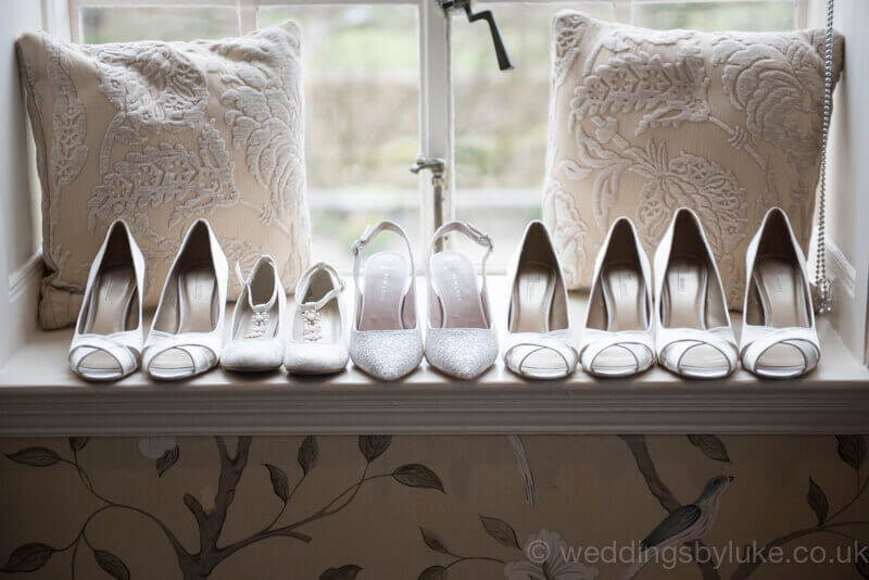 Nicola is already here, with her bridesmaids, mum and friends all helping out. Capturing bridal prep photography feels as though you’ve got a privileged backstage pass. It’s a chance to use the camera to ‘report’ events, capturing the moments that, but for the photograph, no one would ever see. A row of shoes, almost ready for action. A dressed but empty ceremony room. A hug between grandmother and daughter. It’s always one of my favourite parts of the day.